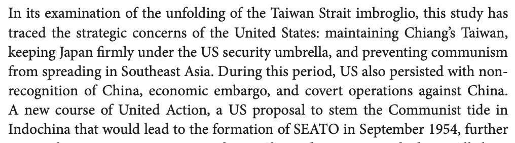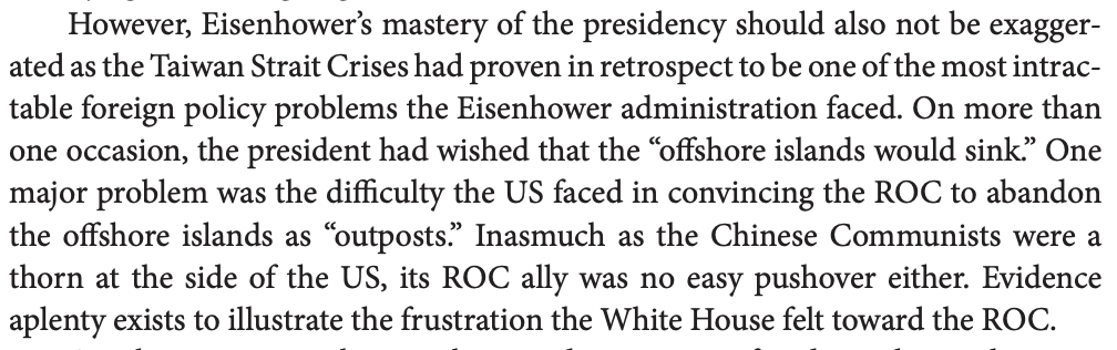 - Ike had to deal with domestic anxieties about becoming involved in the Crisis ‘by presenting the Formosa Resolution as a “virtuous” American act in accordance with American “tradition”. Page 278