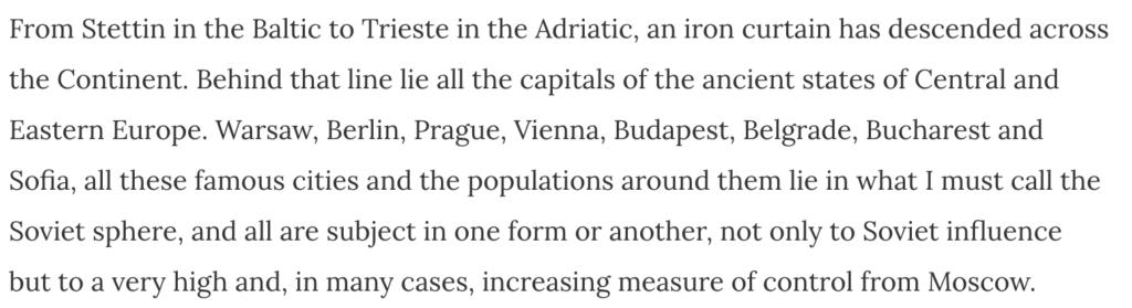 Q – what impact do you think the Iron Curtain speech had on the Soviet Union?