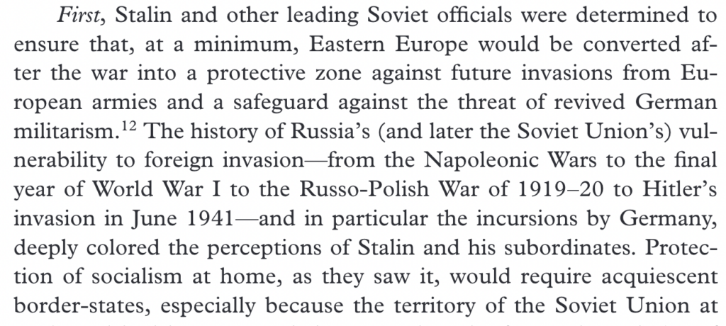 - ONE This paragraph reinforces the analysis in the rise of Stalin with the Soviet psyche. After the Second World War, he decided that no longer would the country be invaded from the West.