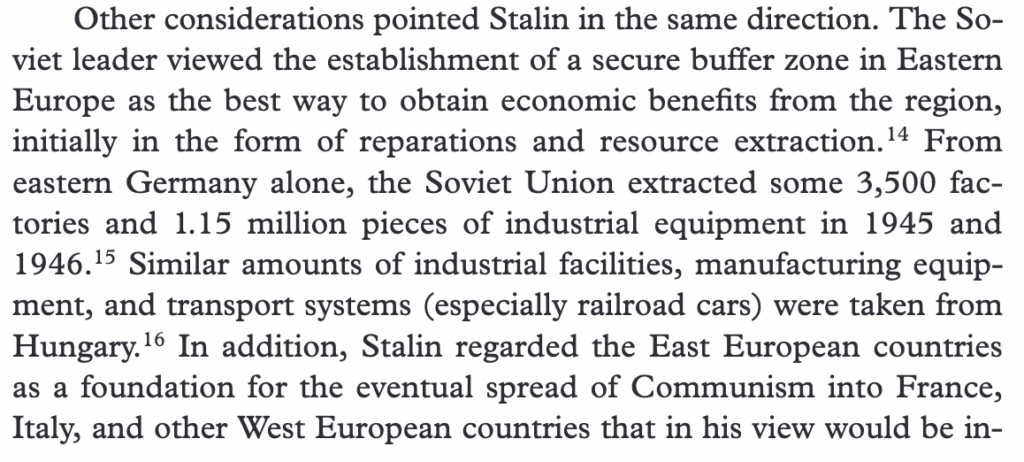 - TWO To weaken his western flank, Stalin took the decision to take materials off Germany at the end of the war. This strengthened his own economic and military power and put the Soviets at an advantage.