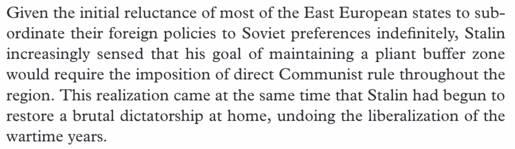 Much of what is written here is from Mark Kramer’s Stalin, Soviet Policy, and the Consolidation of a Communist Bloc in Eastern Europe, 1944-53.