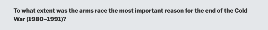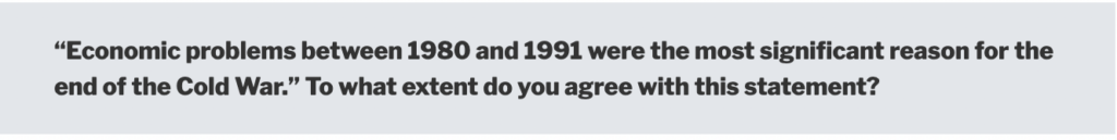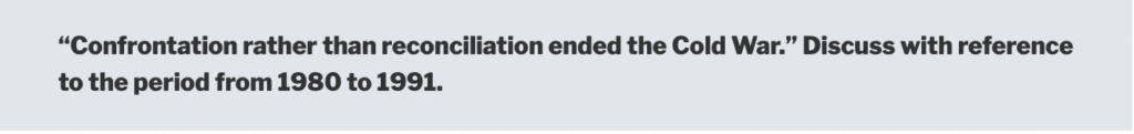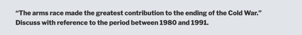As with all historical events, there are different views on how the Cold War ended. This page tries to keep the level of detail relatively brief as you will not need a huge amount of depth to write an essay on the topic. To date, the following examination questions have been asked: