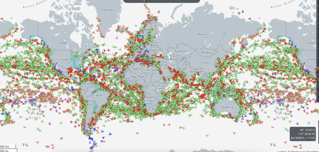and mass consumption, especially as the world generally gets richer, is growing too. Look at the image below. It shows how many ships there are in the world on one particular day.