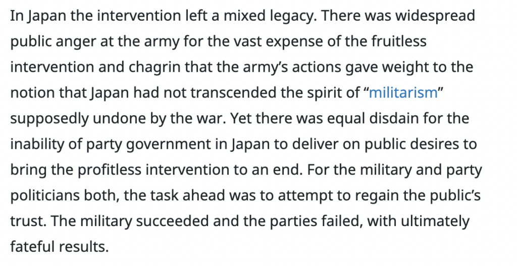 The article above ‘Making Sense of the War (Japan)‘ explains the following consequences of the First World War: